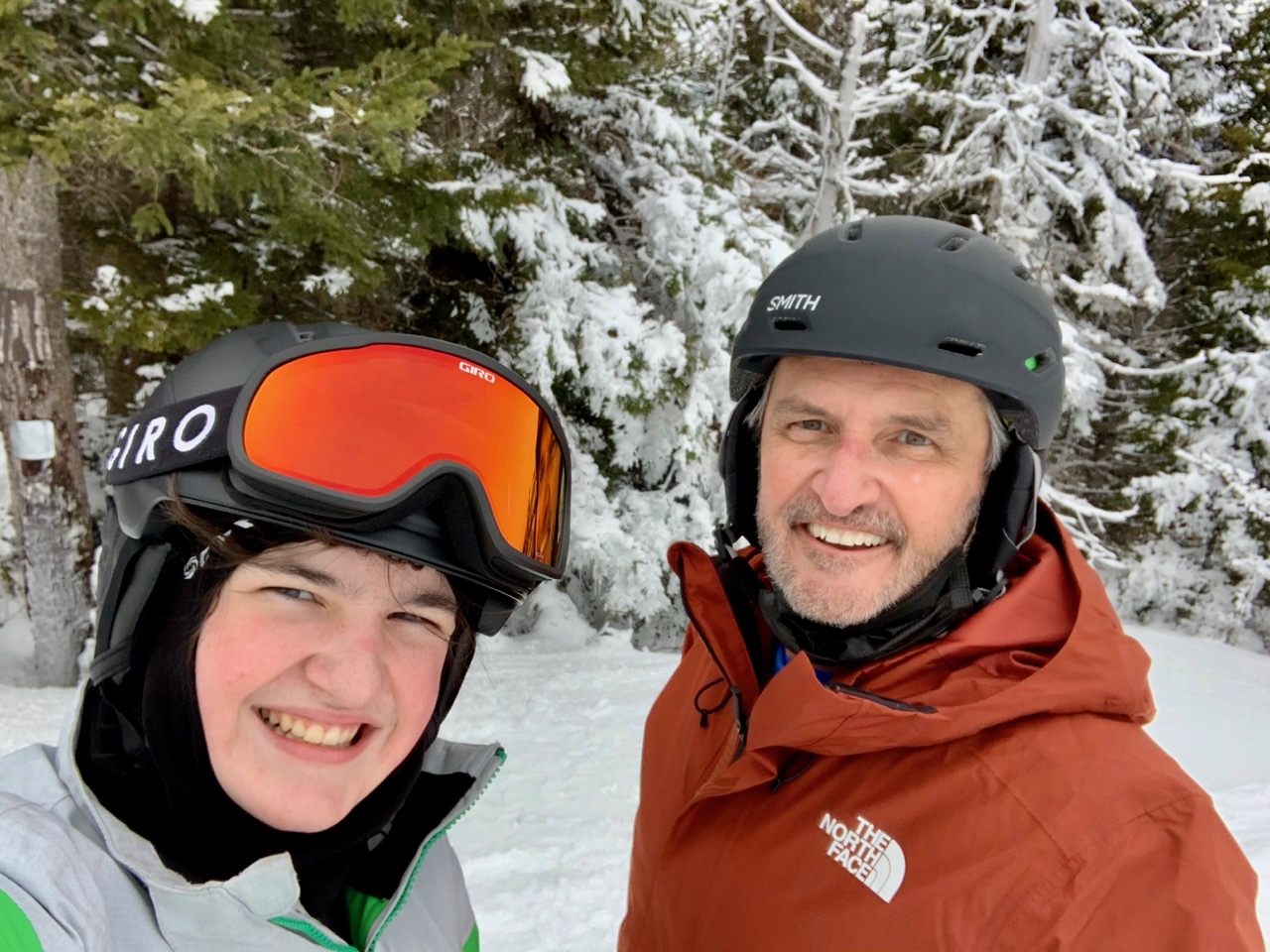 Conditions were good, a decent amount of fresh, loose powder which is often a rarity in northern New England. Busy, lots of people, but ski areas are amazingly different now because of the pandemic. With the exception of one socially distanced selfie (thx Camden), we ( and everyone else) wore masks all day long. When people didn’t, they heard about it fast from no bullshit Gunstock staffers.