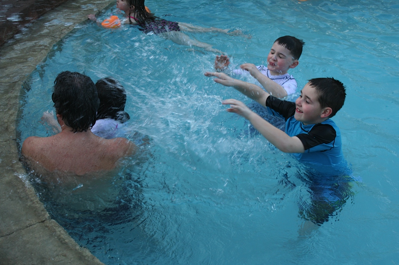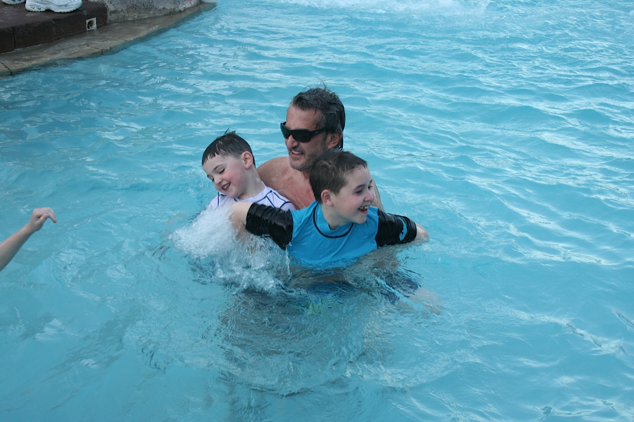 nothing feels better than a dip in a pool after a long, hot day. The pool at our hotel was a real nice one. We did a lot of “fake fighting” having been inspired by the Indiana Jones show. You and Ben piled onto me and soaked me with endless splashes.
