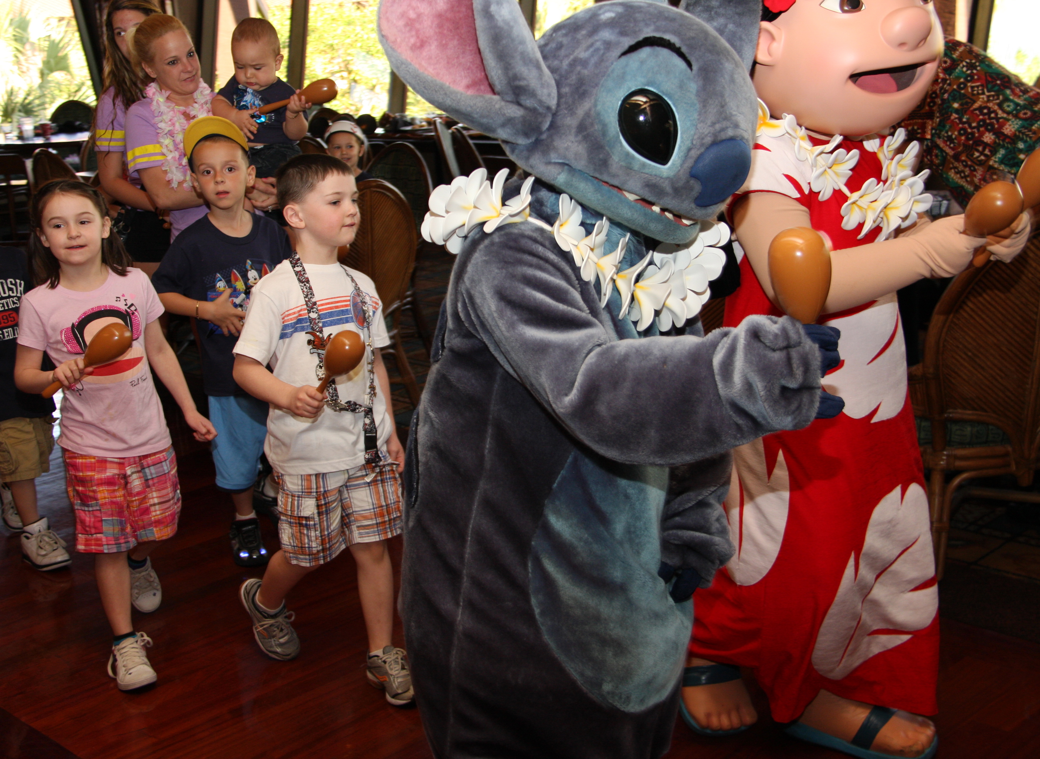The Polynesian breakfast – this was by far the best morning meal we had all week (except maybe for the countless powdered mini donuts). Lilo & Stitch came around, as did the star of the show Micky Mouse. You & Emma went to the front of the conga line with marrakas and marched around the restaurant with others behind you – you were both laughing!