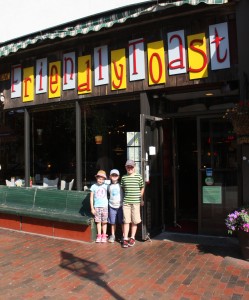 After picking you up in the “Youk,” we made our way to Portsmouth for breakfast at The Friendly Toast. This was the first time I had taken you there – and actually it was my first time too. The “Toast” is not only friendly, it’s an eclectic place to hang out with all kinds of interesting things to see around the restaurant. We had fun playing I Spy while waiting for breakfast to arrive.
