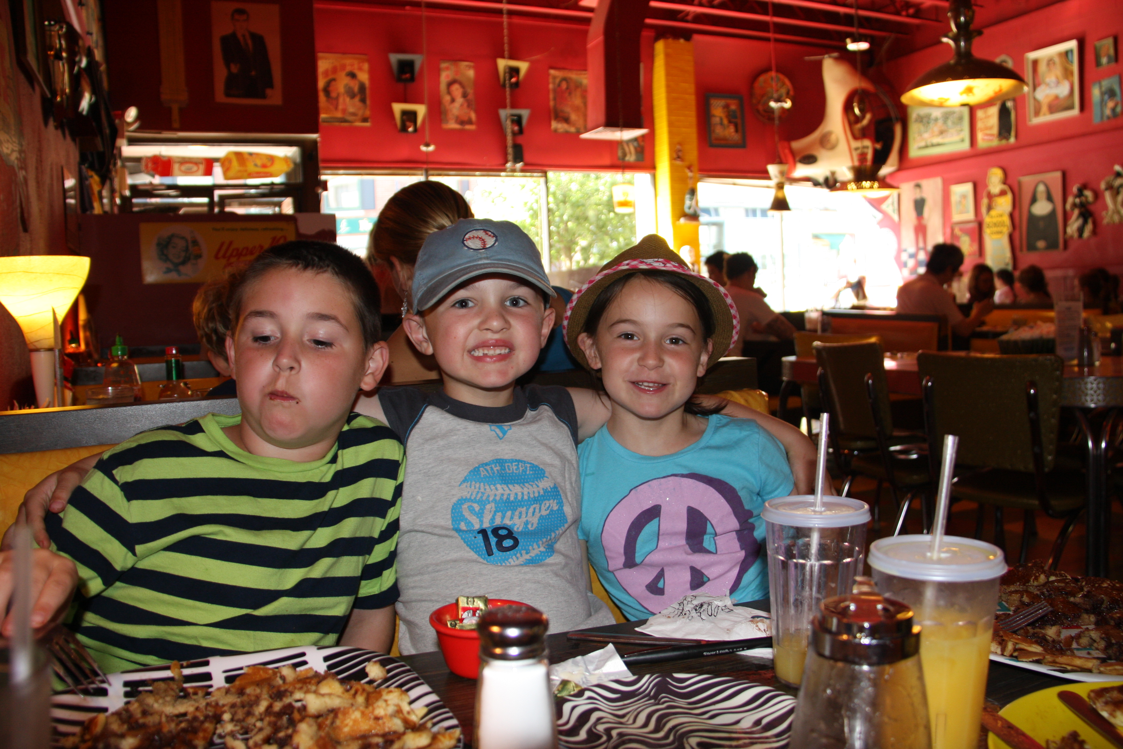 Ben, you ordered chocolate chip pancakes, and so did Camden. They literally filled up your entire plate! Emma, you were in the mood for french toast, which was delicious (I stole a bite). I had scrambled eggs with veggies and a huge slice of toast which was, indeed, very friendly.