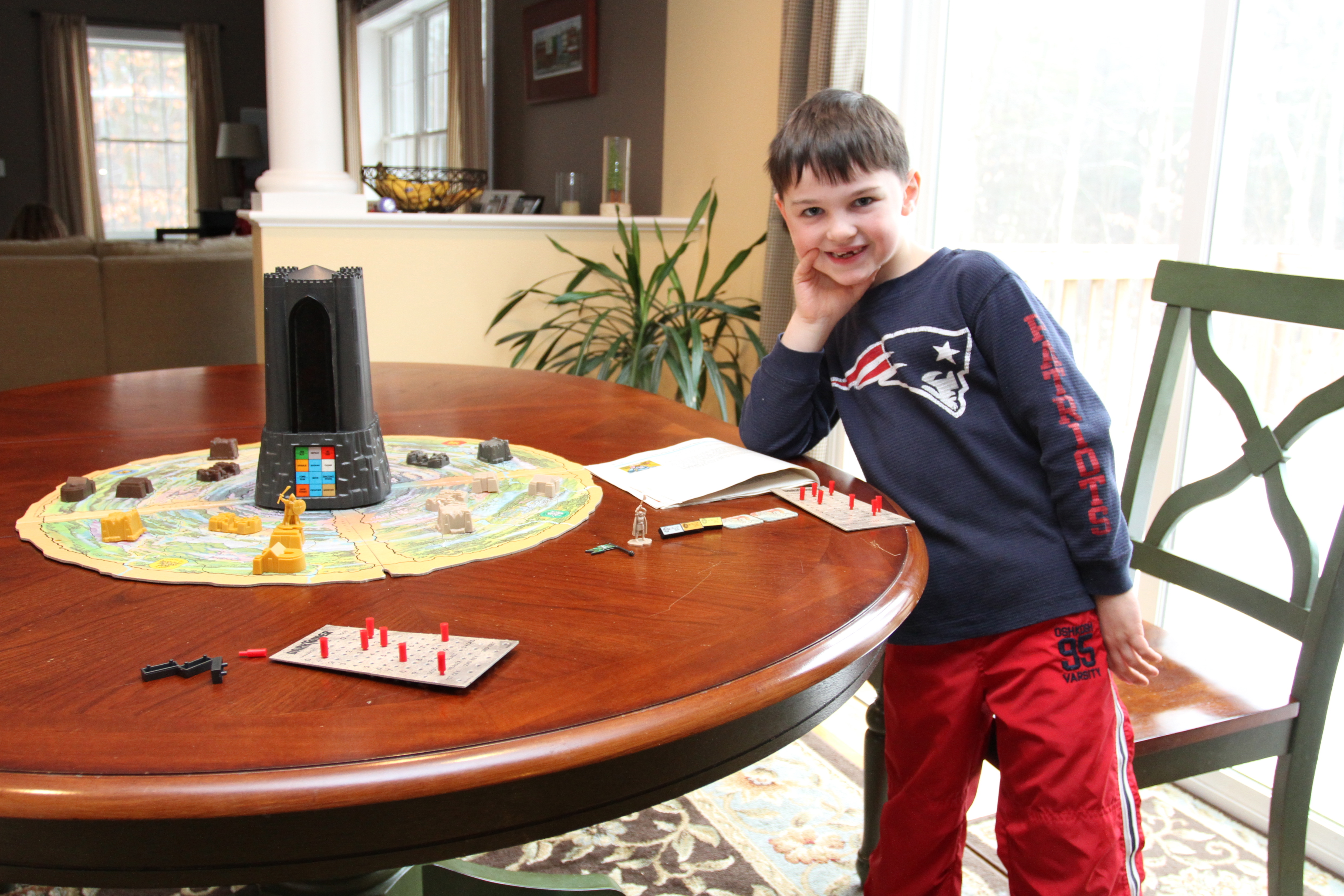You loved Dark Tower and caught on quickly – it’s a fairly complicated game with 40+ pages of instructions – and we moved our warriors steadily around the board. You really enjoyed the battles (which is the only way to win gold and keys), the ongoing sound effects and strategy. We were both disappointed every time the Dark Tower randomly “cursed” us, giving some of our warriors and gold to the other player!
