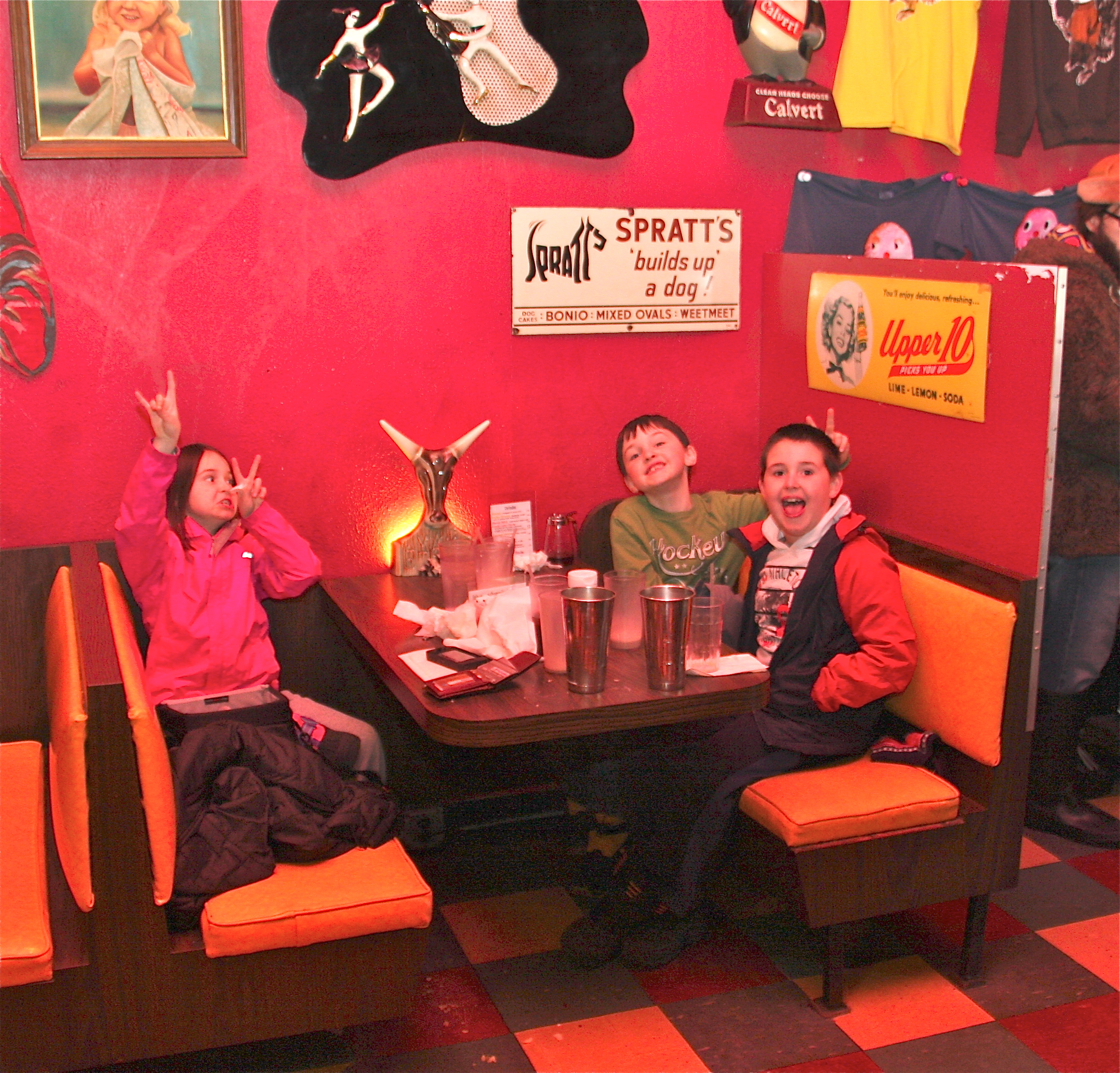 Before leaving, you all made funny faces in the carnival mirror at the back of the restaurant. I think this is one of the best 3 Musketeers photos of all time!