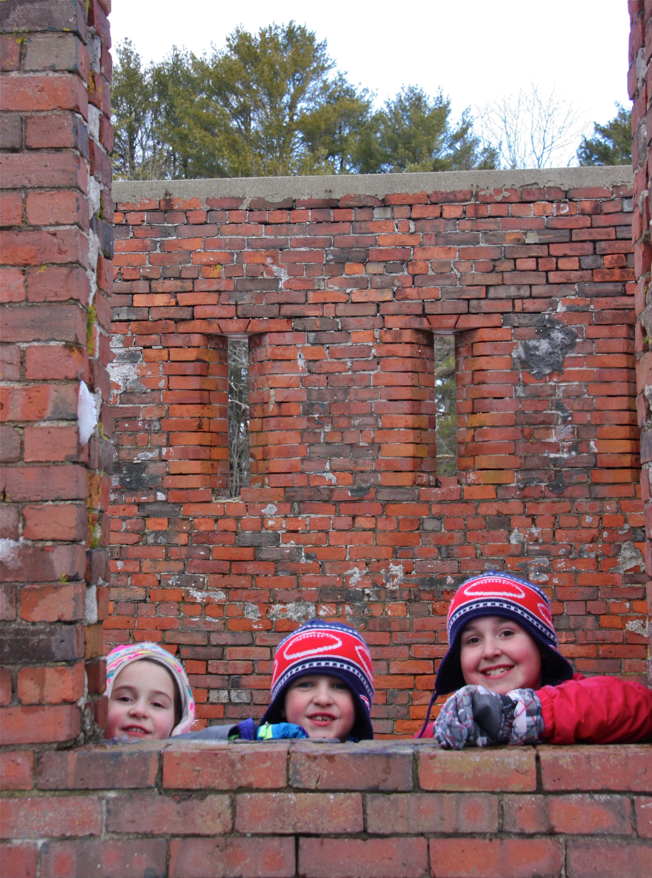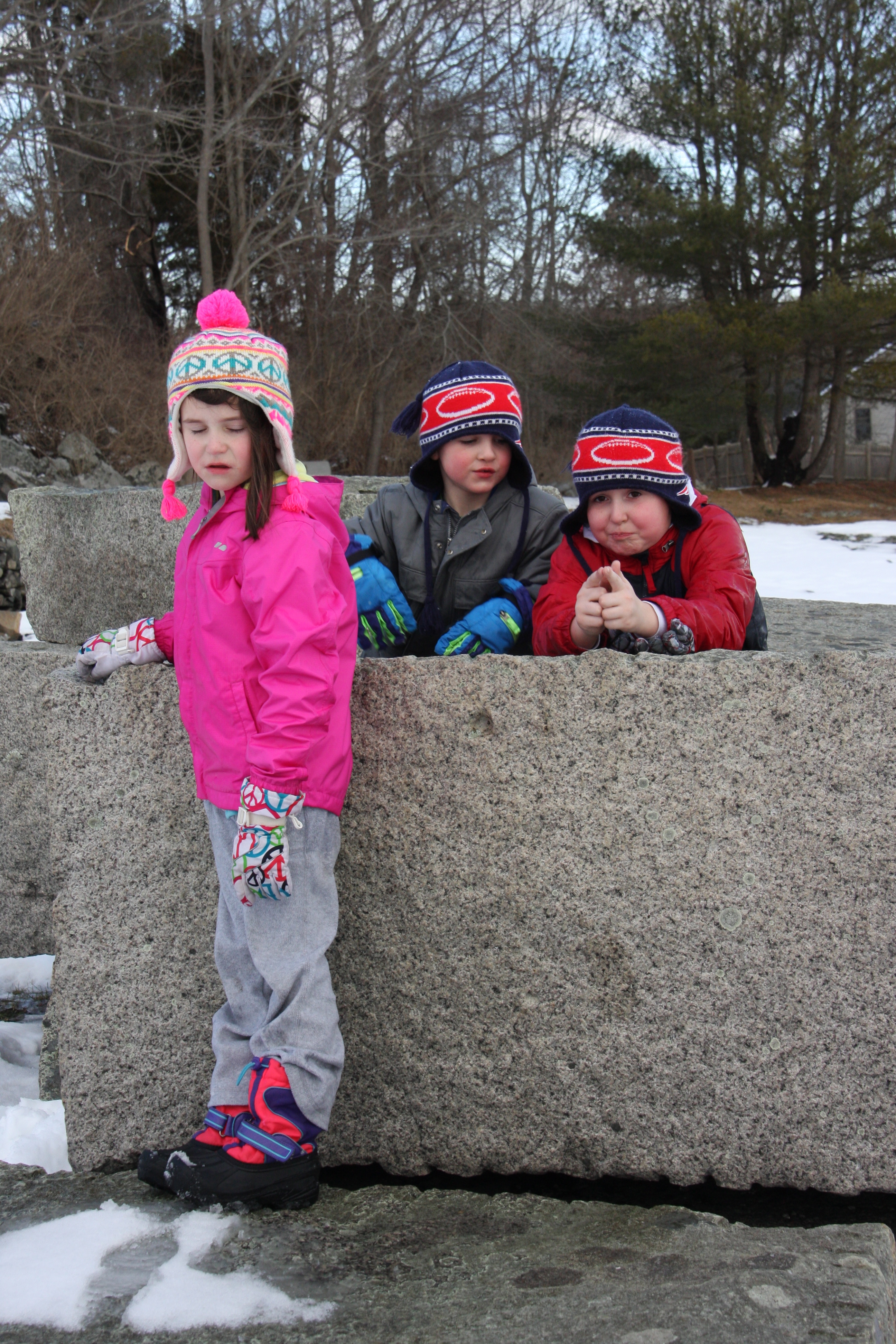 After exploring the blockhouse area – with Ben and Camden sliding down the steep hill – we checked out the granite boulder field and then headed to the car, wet and tired but still laughing.