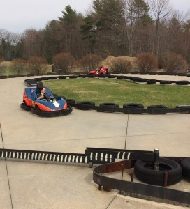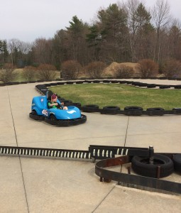 After miniature golf, Emma and Camden zipped around on the go-carts as Ben and I watched. Round and round you go, where it stops, everybody knows!