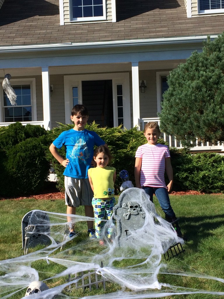 Later in the day, after things had settled down a bit, we went outside and worked on a cool Halloween set-up on your porch and front yard. Later, you and Ainsley wanted to go to the neighborhood playground down the street. I decided to accompany you.