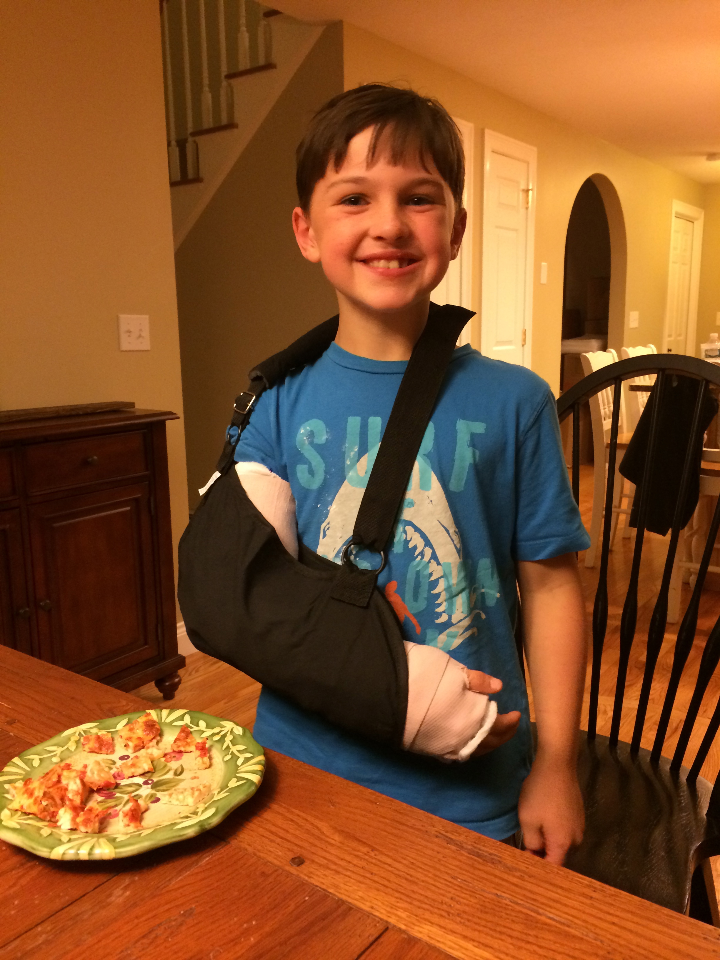 After what felt like an eternity of waiting we got a phone call – the x-ray revealed a dislocated and fractured right elbow. Not good news. I felt so bad this had happened “on my watch” and didn’t say much as I stayed back at your house with your Mom, Dadu and Nana. I kept thinking about how you were in a new neighborhood, didn’t know anyone, everything was different. I couldn’t believe you wouldn’t be able to start school, meet new friends for weeks or play on the hockey team you had just tried out for and made.