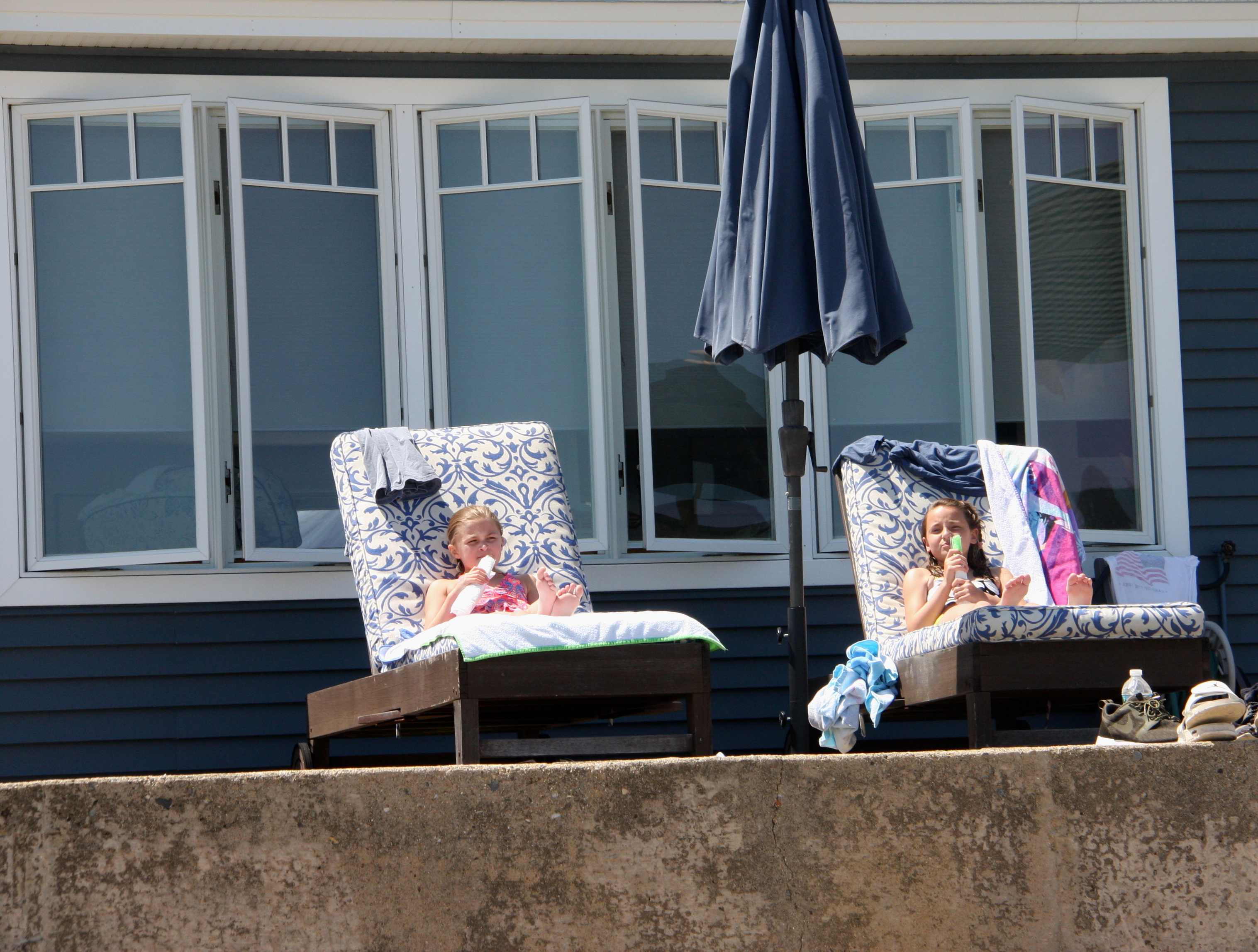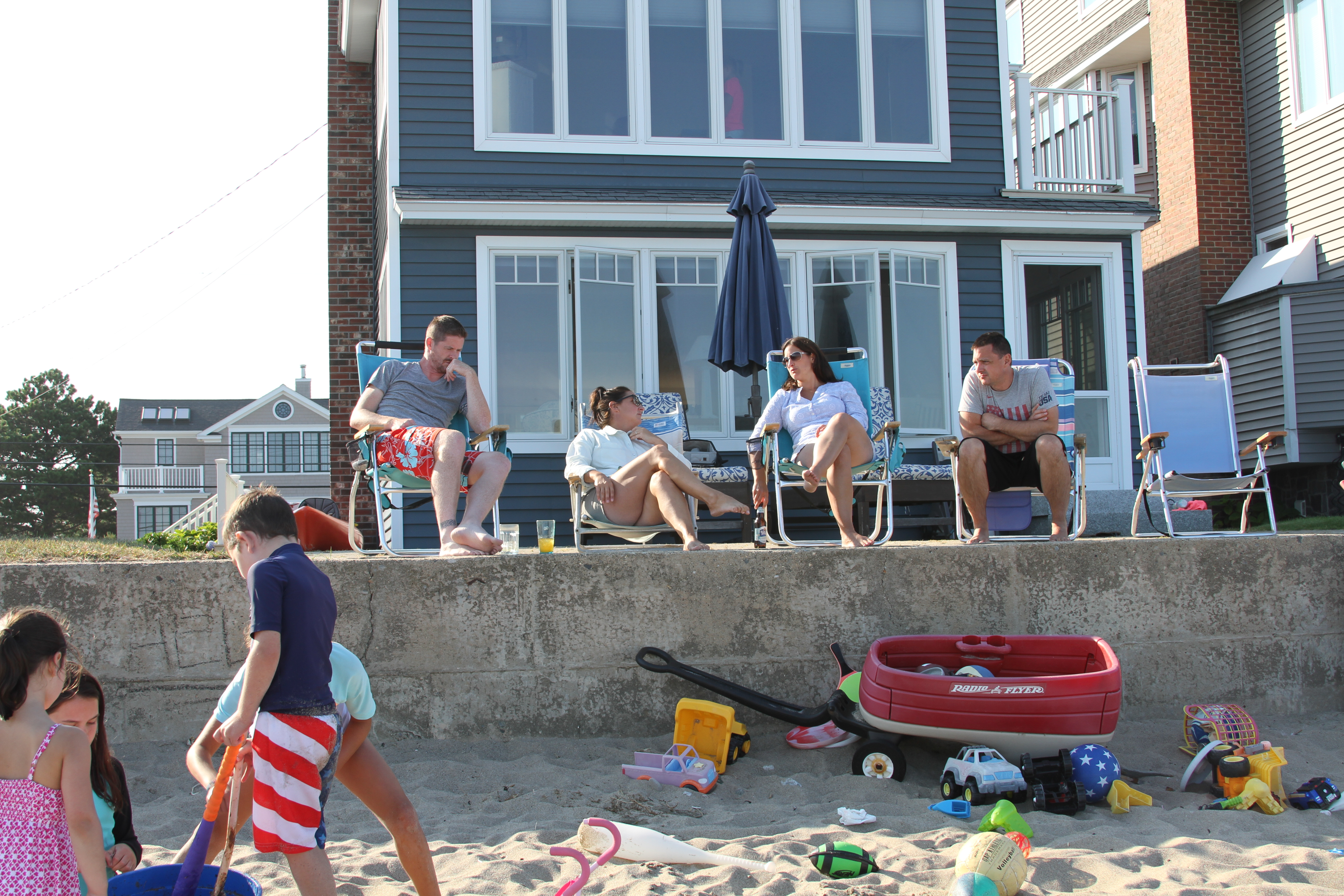 It was a beautiful summer with a couple notable twists: the Clickman clan lived there from June 30 through August 15; it featured phenomenal weather with the longest stretch of sun and clear skies I can remember in our 20 years of owning the beach house. We had our annual 4th of July party, there were sleepovers, lots of boogie boarding, yummy deck food grilling, drippy castle building, freeze pops; river and lake building and visits to the Scoop Deck. Here’s a visual recap of July & August: