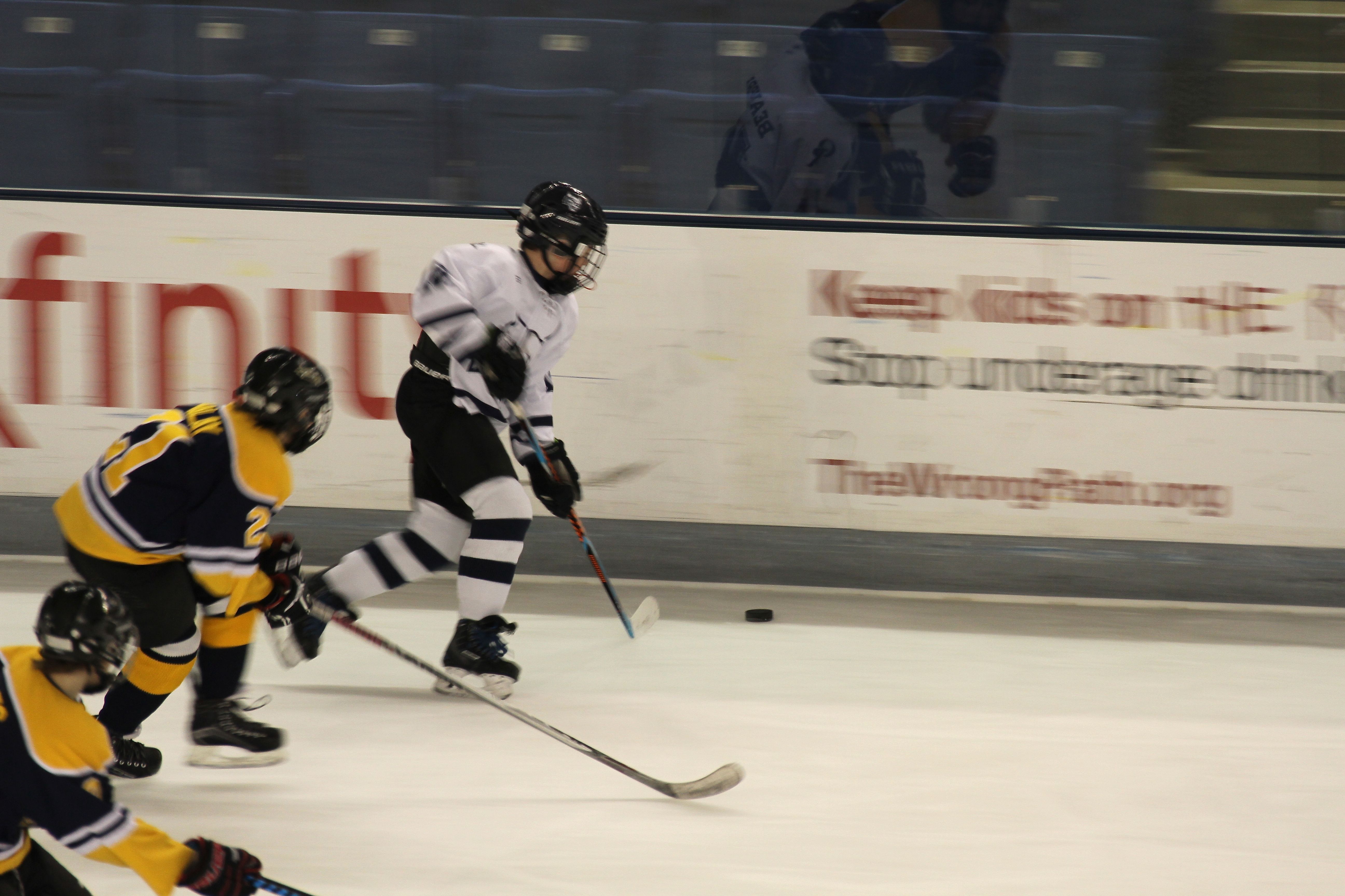 As if your Pee Wee 1 games weren’t keeping you busy enough, you also joined the Middle School team, playing hockey games in Massachusetts. Your Dad is one of the coaches.
