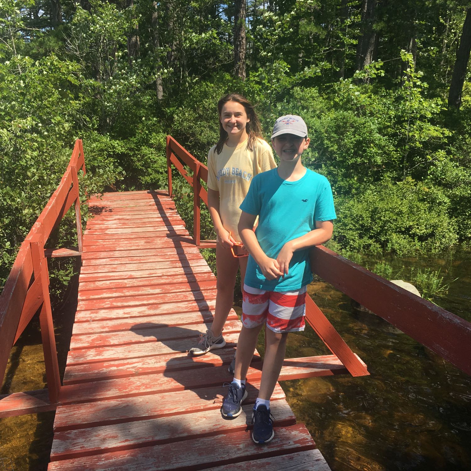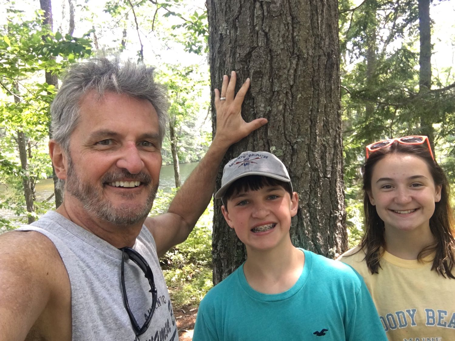 We walked off our lunches, hiking across a bridge onto an island, covering every part and trail. Very cool. Emma you closed your eyes standing on a rock with Camden – funny, look at the photo – you look relaxed!