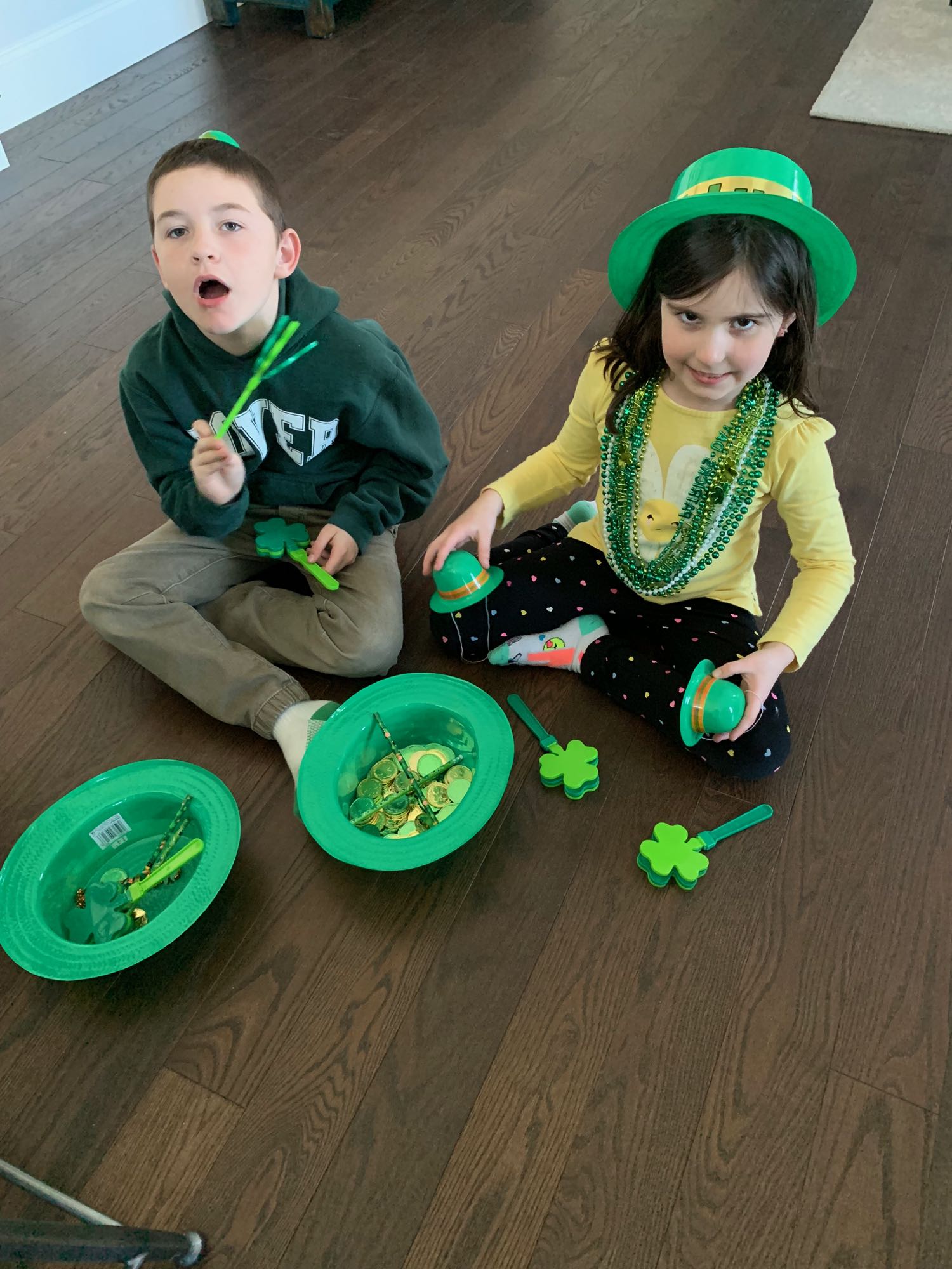 Grammy and I were ready with green shamrock clappers, beads, hats (large and mini), coins and decorations.  Everyone took St. Patty’s day pencils.  It got rowdy when we all made the hand clappers go at maximum loudness simultaneously – impressive!