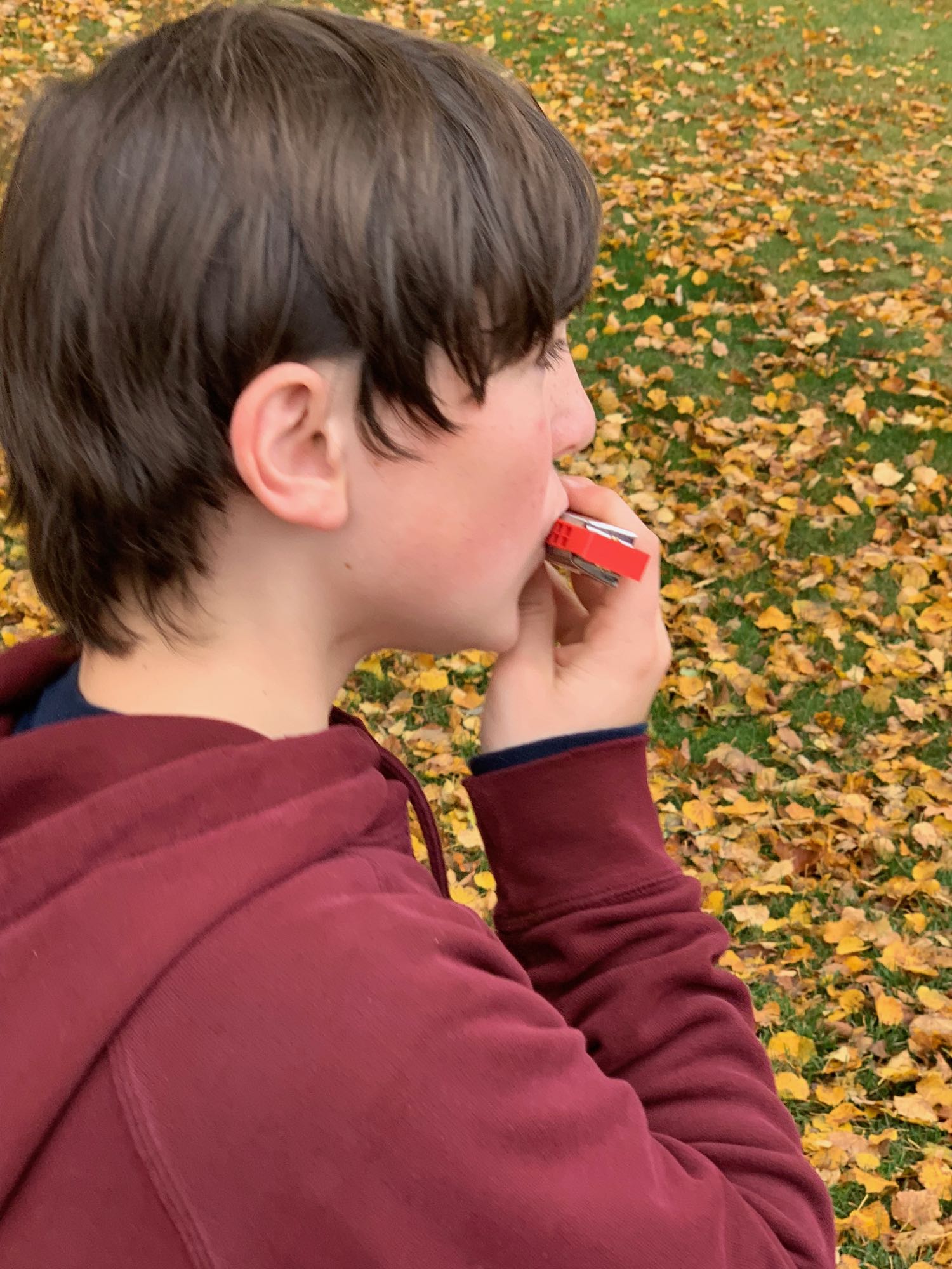You picked out a harmonica at Macro Polo, our favorite funny store. I explained the importance of blowing out and sucking in when playing “the harp.” Some famous music artists didn’t know this when they started!