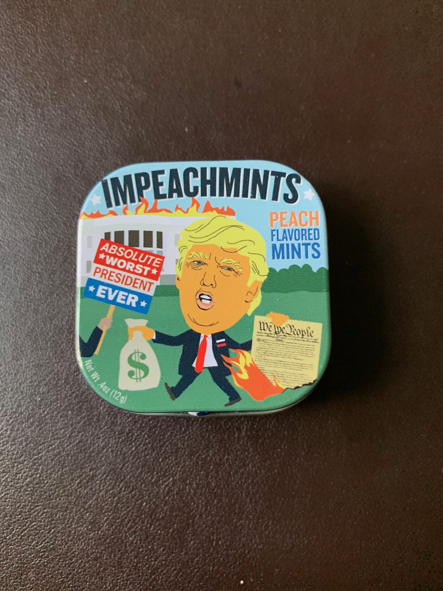 My souvenir at Macro Polo was a tiny tiny can of “Impeachmints”