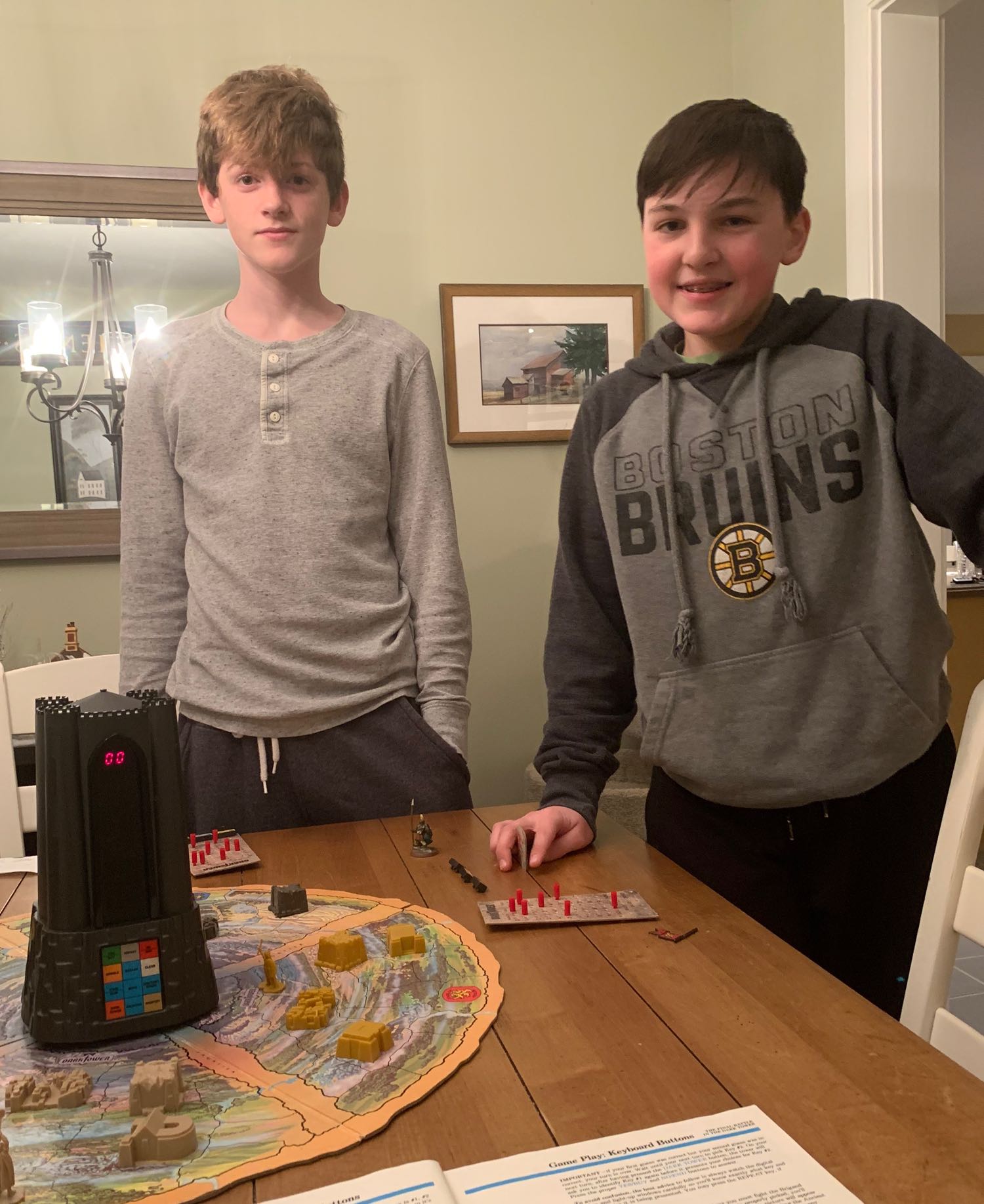 We introduced your best friend Eli to Dark Tower on Saturday night. We gave him the background about this Milton Bradley game; sold in the early 1980’s (one of the early “digital’ board games) but within a few years they stopped making it. Dark Tower is still available, but at a high price on sites like EBay where you pay hundreds of dollars.
