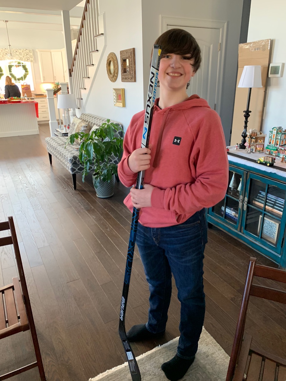 One of the highlights of a busy, fun day was watching you open your “big” present. I’m sure you were NOT wondering “I wonder what’s in this long, green, mysterious box?” There was no hesitation or doubt on as you quickly tore the paper to reveal a new custom hockey stick for the 2020-2021 season.